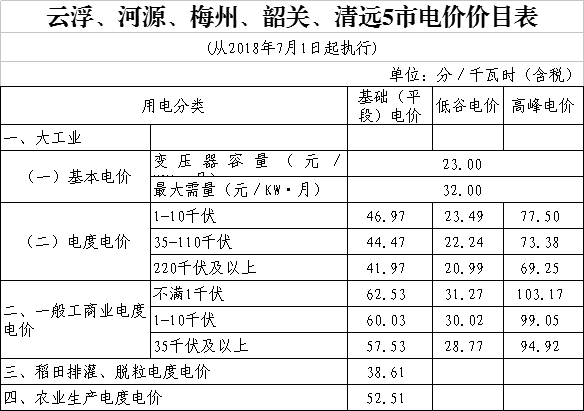 相關(guān)附件:云浮等5市電價(jià)表2018年7月.xls