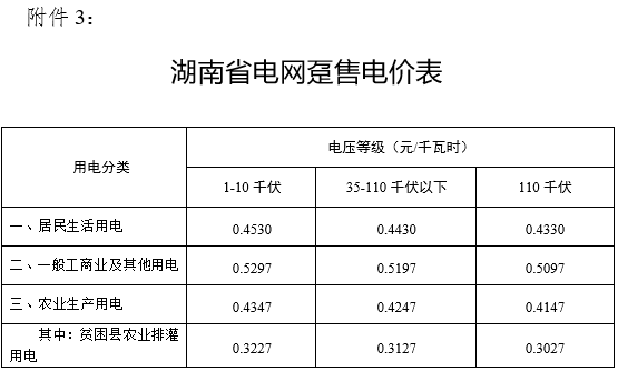 3、湖南省電網躉售電價表