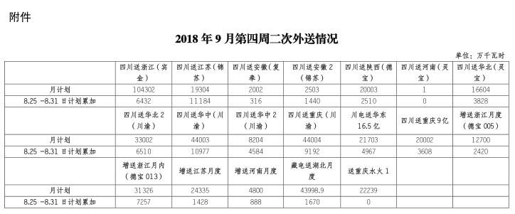 四川9月第四周二次外送情況信息披露:送浙江(賓金)月計劃10億千瓦時