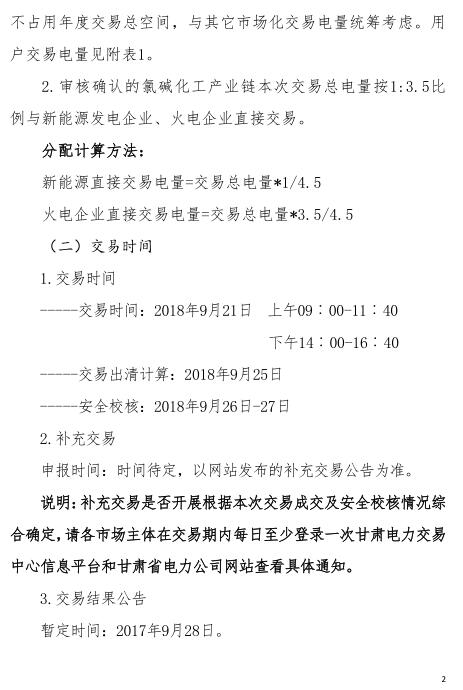 甘肅電力交易中心今日發(fā)布了《甘肅省2018年氯堿化工產(chǎn)業(yè)鏈增量負荷與發(fā)電企業(yè)電量直接交易公告》,定于9月21日開展金川氯堿化工產(chǎn)業(yè)鏈增量負荷與新能源、火電企業(yè)電量直接交易。本次交易采用雙邊協(xié)商交易模式。
