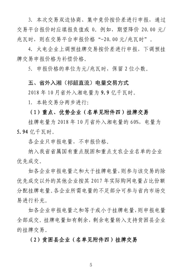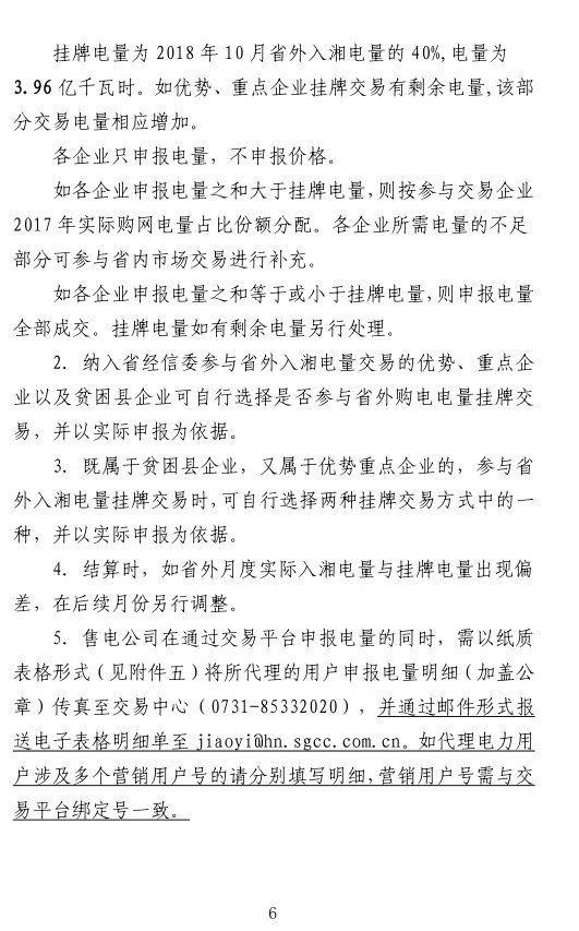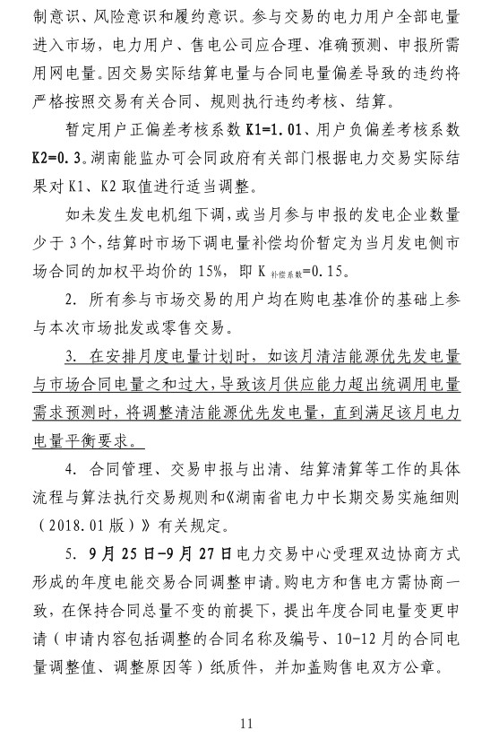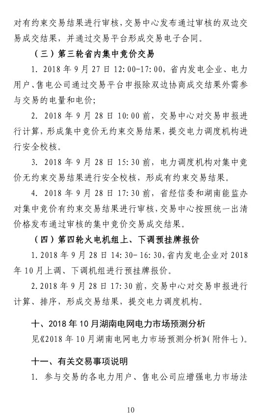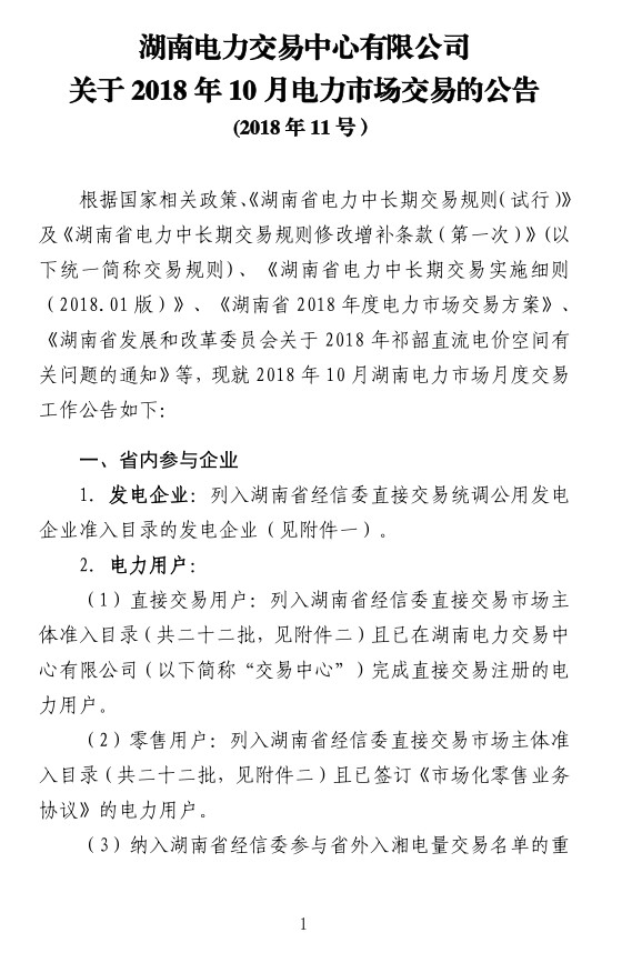 湖南2018年10月電力市場交易:價差-33.80 元/兆瓦時維持不變
