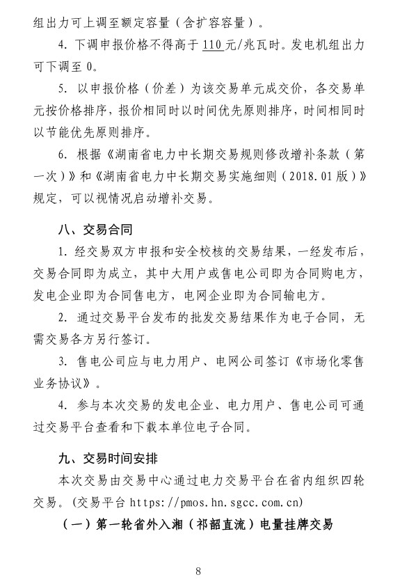 湖南11號交易公告發(fā)布,本輪交易時間25-28日。省外入湘電量為9.9億千瓦時,根據(jù)初步測算,10月省外電量交易價差為-33.80元/兆瓦時,企業(yè)簽訂的省外入湘電量按此價差結(jié)算。本次交易的購電基準(zhǔn)價為:大工業(yè)基準(zhǔn)價399.56元/兆瓦時,一般工商業(yè)基準(zhǔn)價397.56元/兆瓦時。