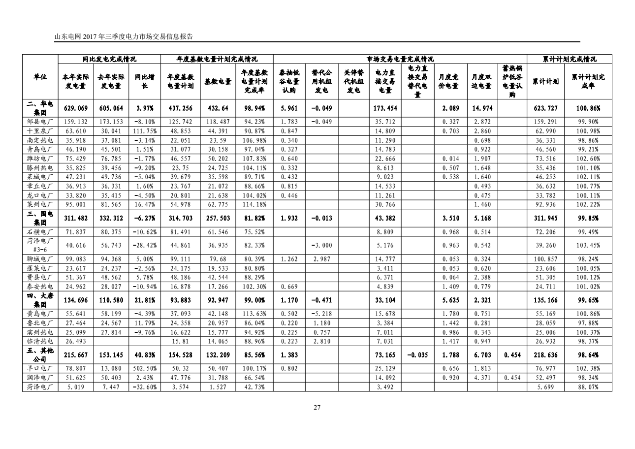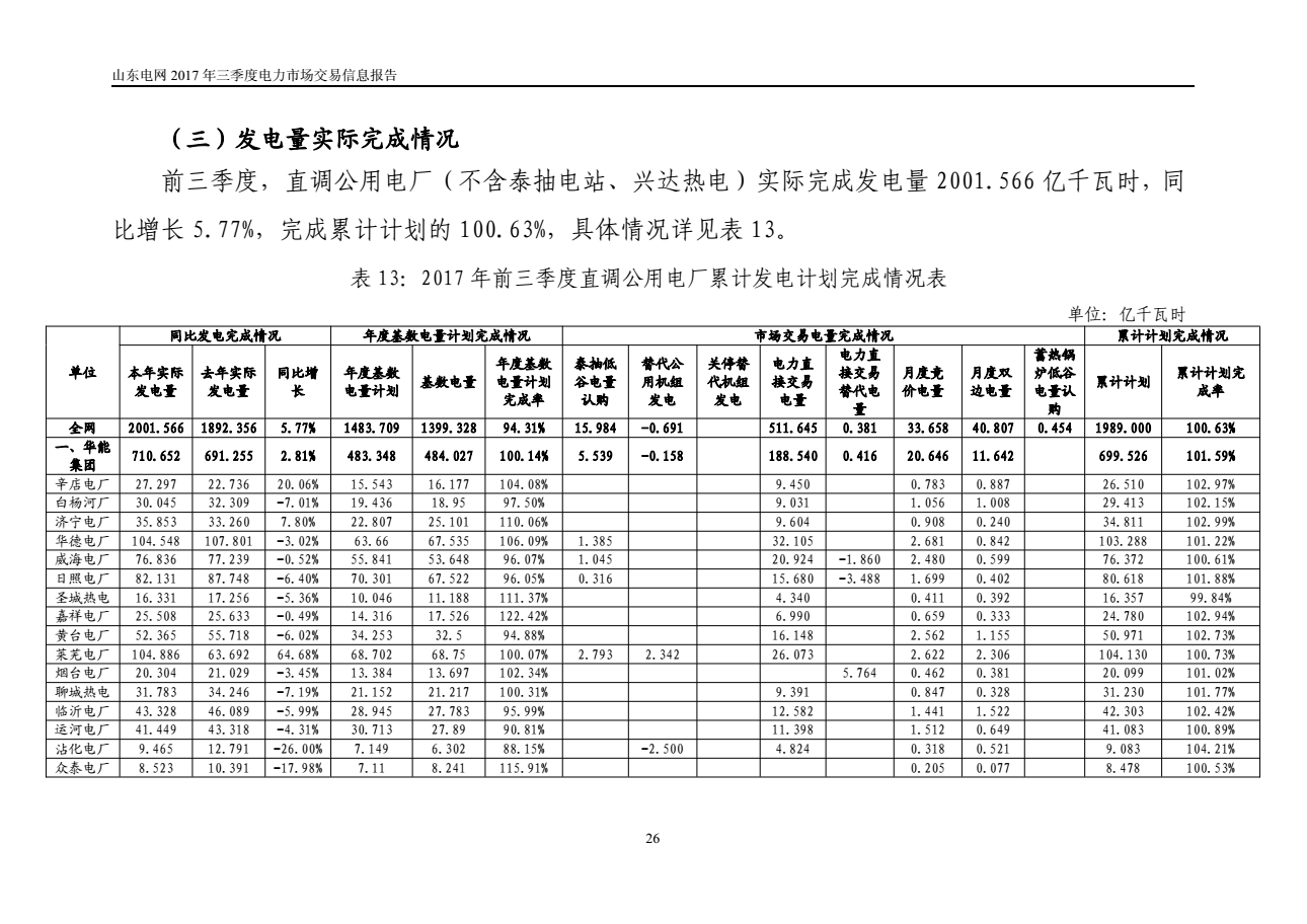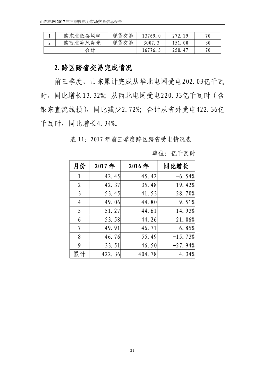 山東電網(wǎng)2017年三季度電力市場交易信息報(bào)告
