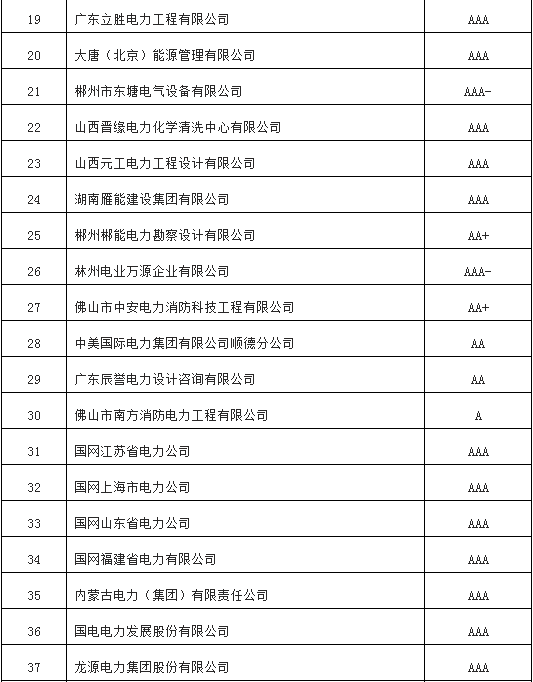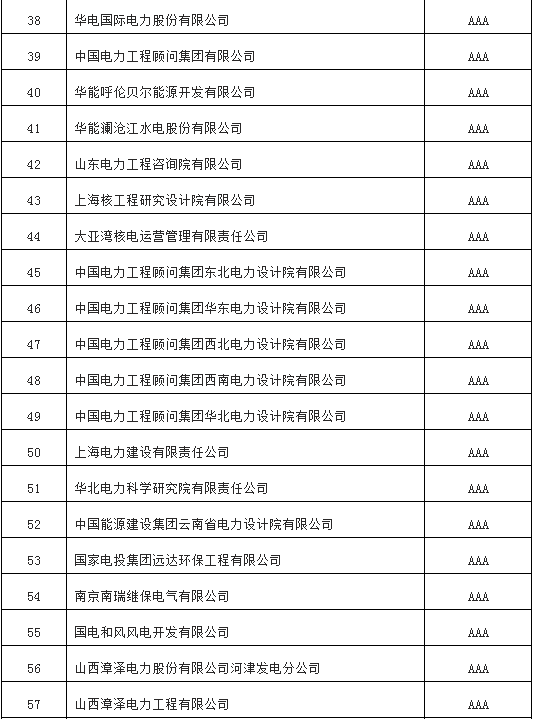 近日中電聯(lián)電力評價咨詢院發(fā)布了《電力行業(yè)2017年信用企業(yè)評價結(jié)果公示》。其中共有101個電力企業(yè)信用等級為AAA,詳情如下:電力行業(yè)2017年