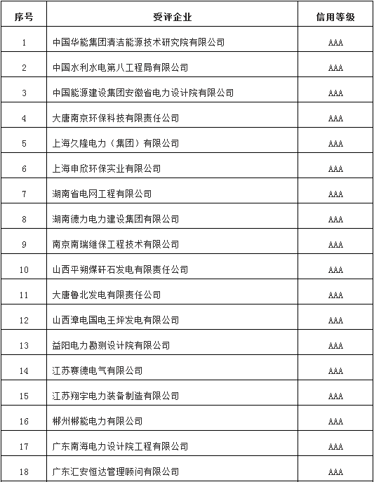 電力行業(yè)2017年信用企業(yè)評價結(jié)果公示:101個AAA級電力企業(yè)