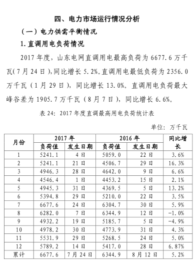 山東電網(wǎng)2017年度暨四季度電力市場(chǎng)交易信息報(bào)告:全社會(huì)用電量完成5430.16億千瓦時(shí)