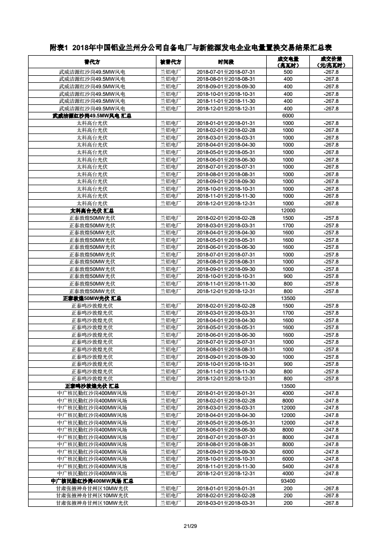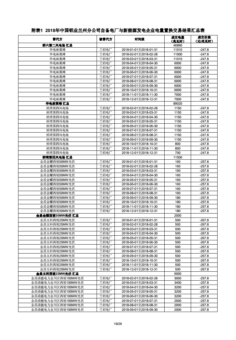 甘肅電力交易中心日前發(fā)布《2018年甘肅蘭鋁、金川集團(tuán)、玉門(mén)石油自備電廠與新能源發(fā)電企業(yè)電量置換交易結(jié)果公告(2018年1月23日)》,本次交