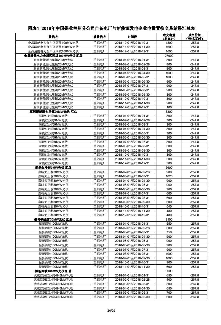 《2018年甘肅蘭鋁、金川集團(tuán)、玉門(mén)石油自備電廠與新能源發(fā)電企業(yè)電量置換交易結(jié)果公告(2018年1月23日)》:總成交量24.55億千瓦時(shí)