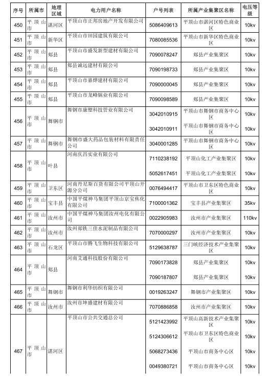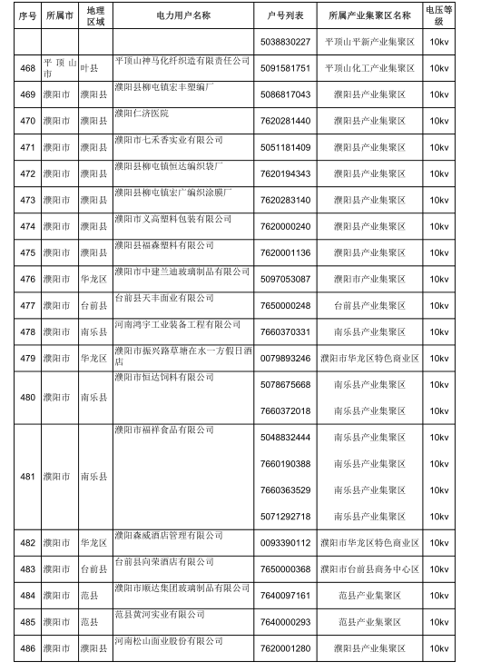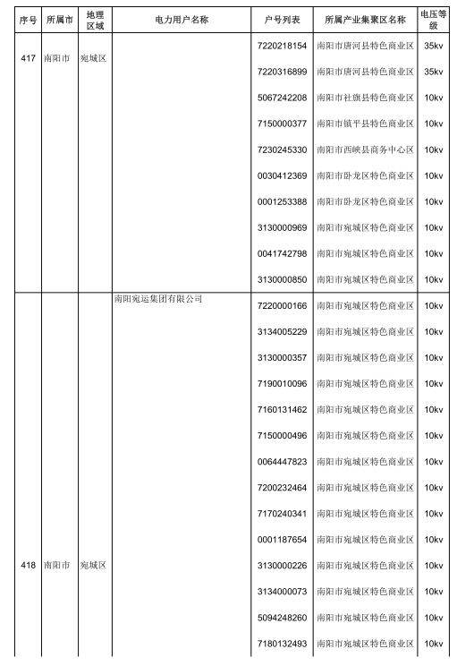 2018年河南省新增942家電力用戶公示名單(第三批)