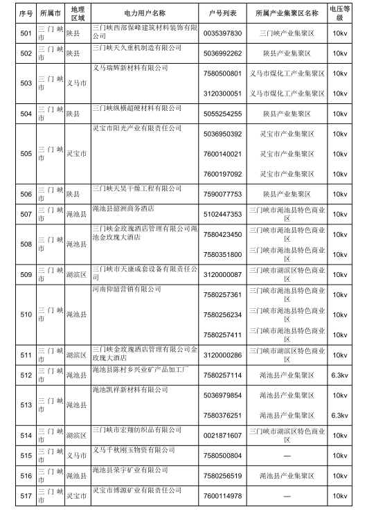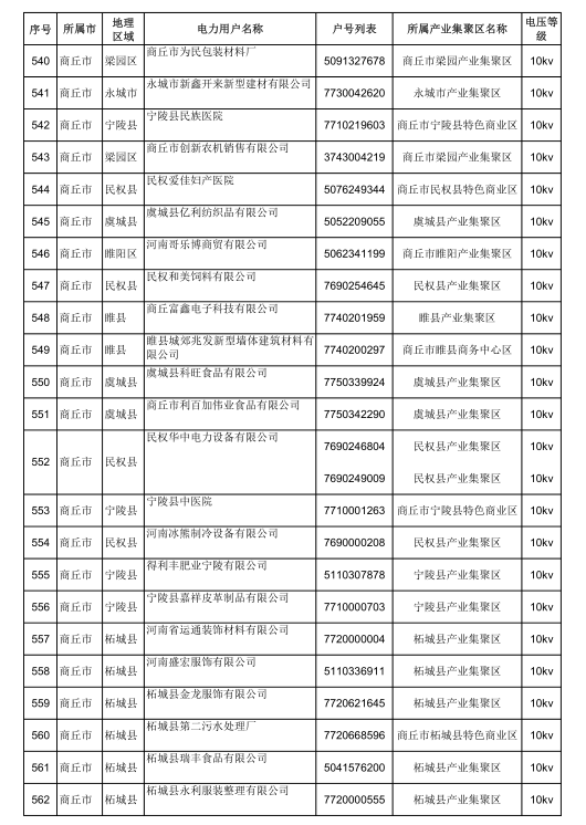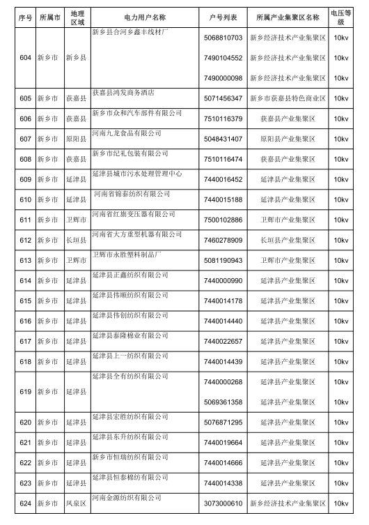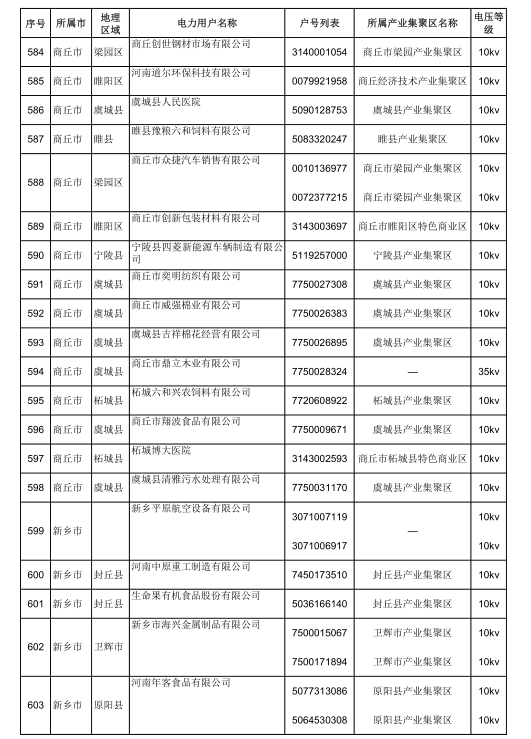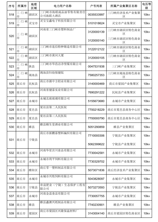 2018年河南省新增942家電力用戶公示名單(第三批)