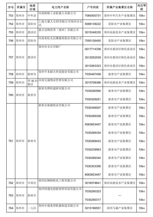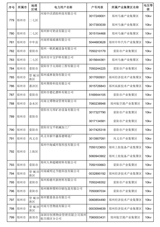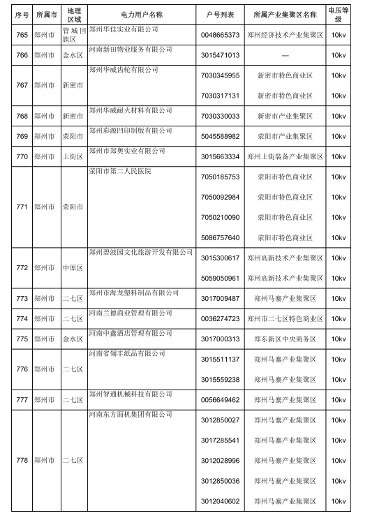 2018年河南省新增942家電力用戶公示名單(第三批)