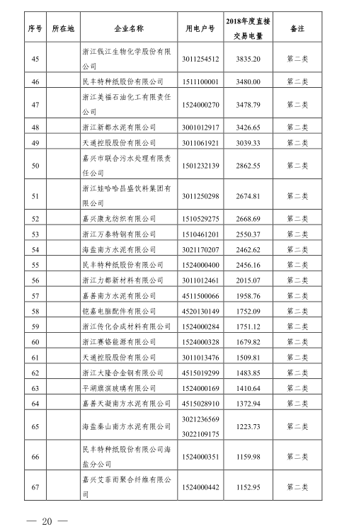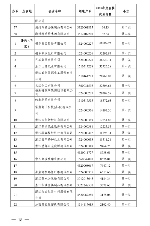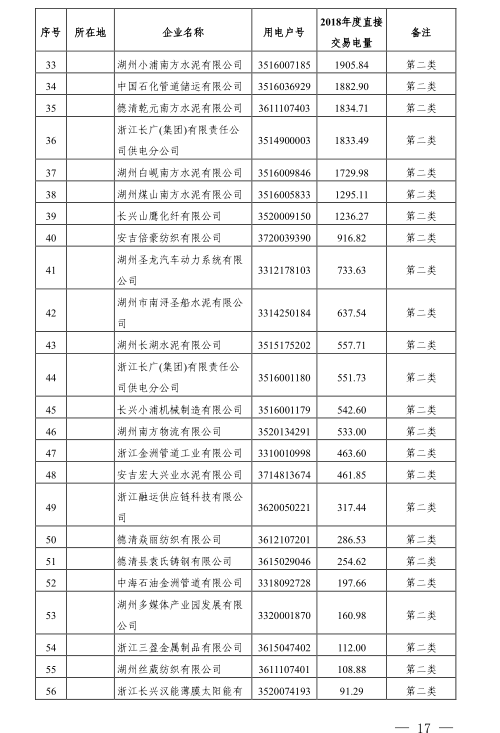 浙江公布2018年度電力直接交易試點電力用戶相關(guān)信息