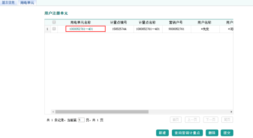 成功生成用電單元后,點(diǎn)擊“用電單元名稱”列中綠色連接可以打開用電單元基本信息,可以完善基本信息。