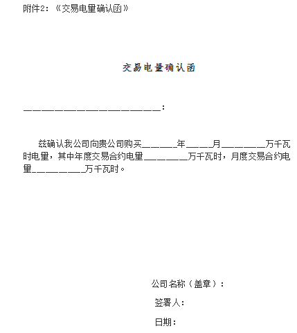 3.2.2 事先向乙方或者電力交易中心提供電力交易容量、負荷曲線以及其他生產(chǎn)運行信息。根據(jù)實際用電需求,準確預測年度購電量及交易月份用電量,并按時提交《交易電量確認函》(見附件2)。