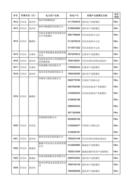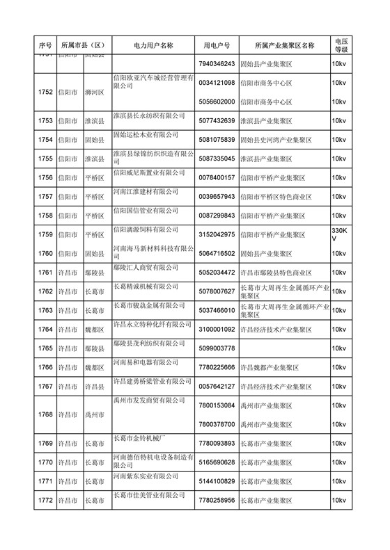 河南公示2018年第六批2389家電力用戶(附名單)