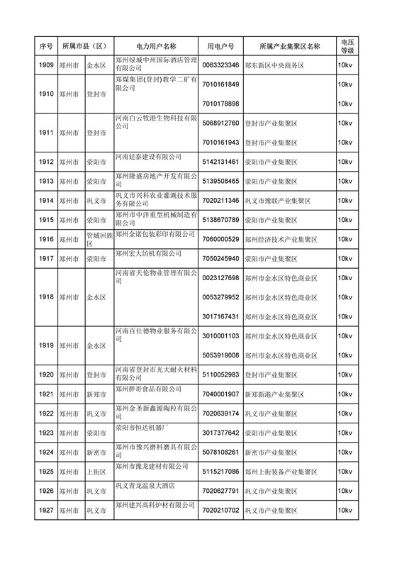 河南公示2018年第六批2389家電力用戶(附名單)