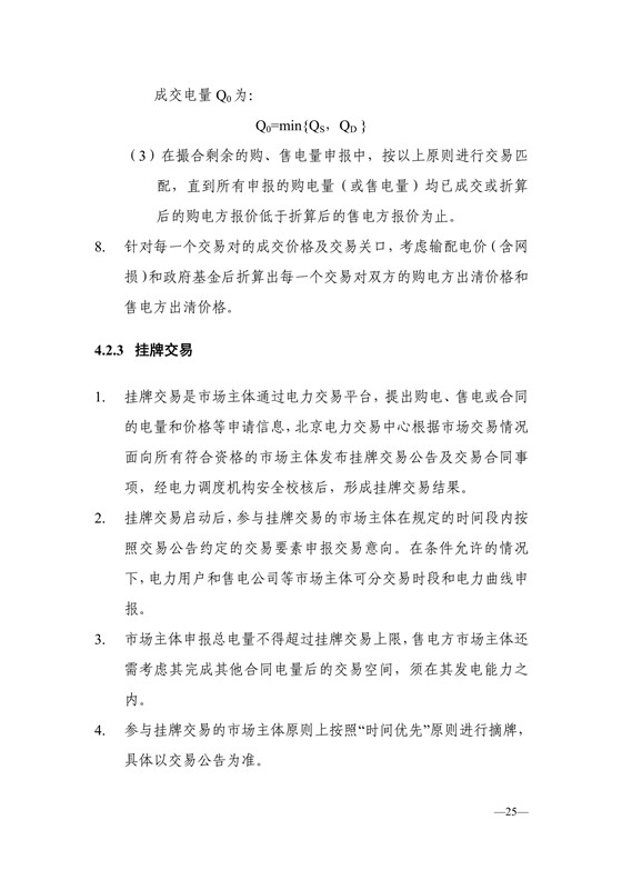 6. 北京電力交易中心在各類交易結(jié)束后,應(yīng)根據(jù)經(jīng)安全校核后的交易結(jié)果,于每月最后3個工作日前,將本月市場化交易結(jié)果進(jìn)行 匯總并發(fā)布,發(fā)布信息中應(yīng)包括月度匯總后的交易結(jié)果和分項(xiàng)交易結(jié)果。
