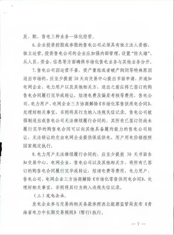 青海省售電公司不得形成發(fā)、配、售業(yè)務(wù)一體化經(jīng)營(yíng)售電公司