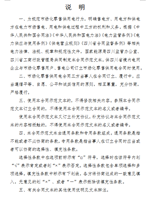 附:1.《四川省市場化零售供用電合同(示范文本)》
