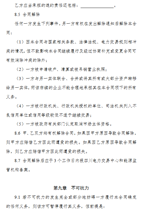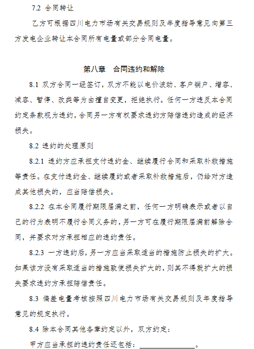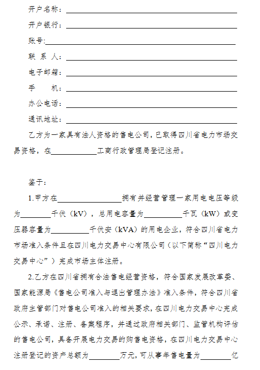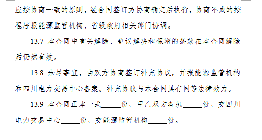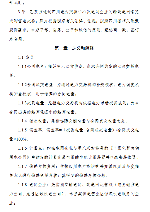 3.《四川省售電公司與電力用戶購售電合同(示范文本)》