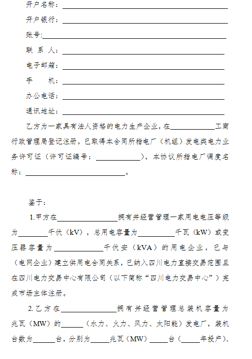 4.《四川省電力用戶與發(fā)電企業(yè)年度雙邊交易購售電合同(示范文本)》