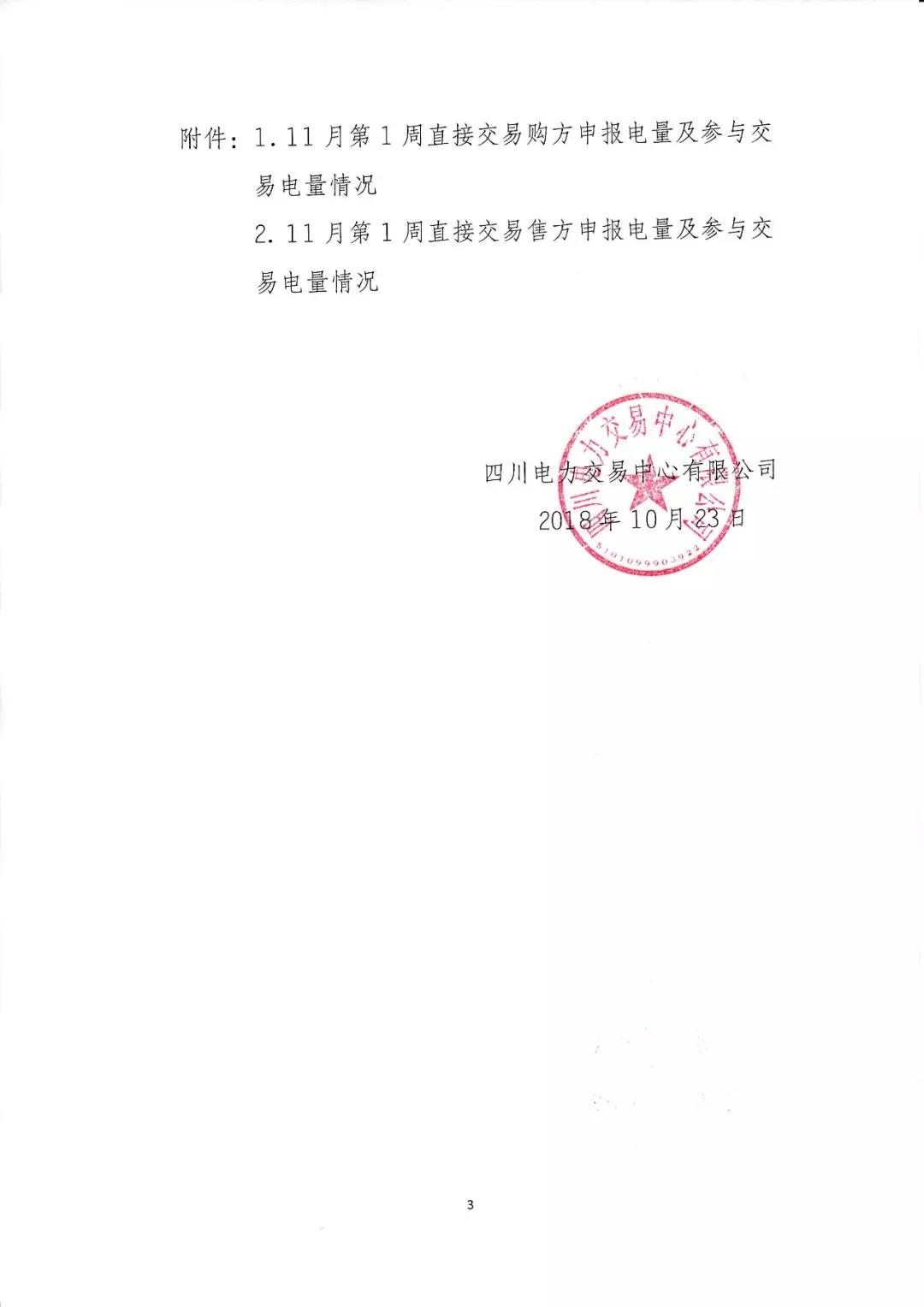 公告 | 四川關(guān)于開展2018年11月第1周直接交易的公告