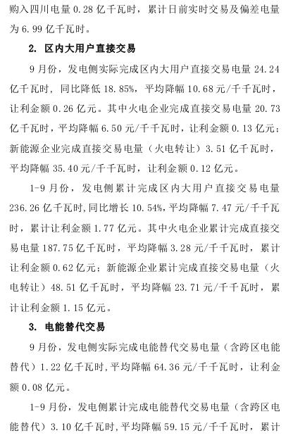 9月份,共有9家售電公司代理119家用戶參與大用戶直接交易,實際完成電量9.67億千瓦時。購售電服務(wù)費278.07萬元。