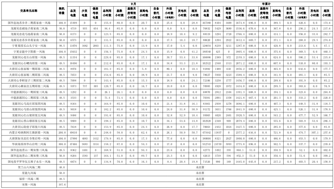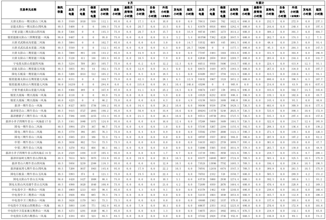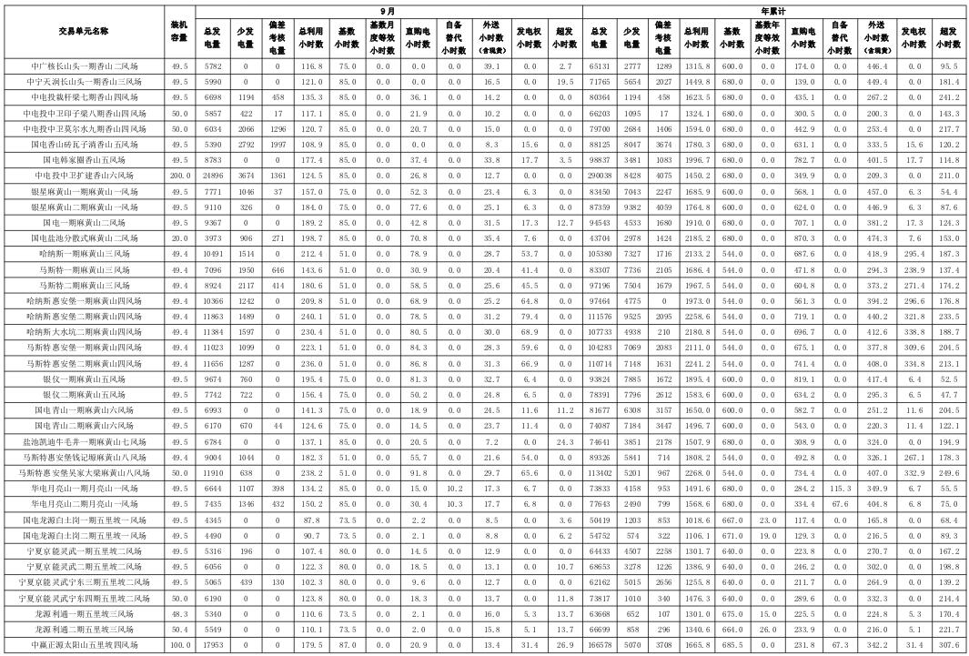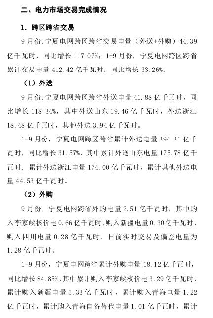 寧夏2018年9月電力市場交易信息月報:9家售電公司代理119家用戶參與大用戶直接交易