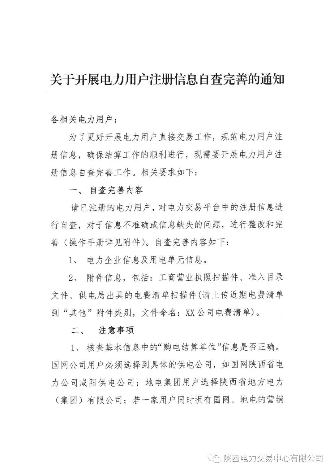 陜西關于開展電力用戶注冊信息自查完善的通知
