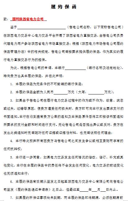 截止日期最早為11月15日 陜西售電公司開(kāi)始繳納2019年履約保函