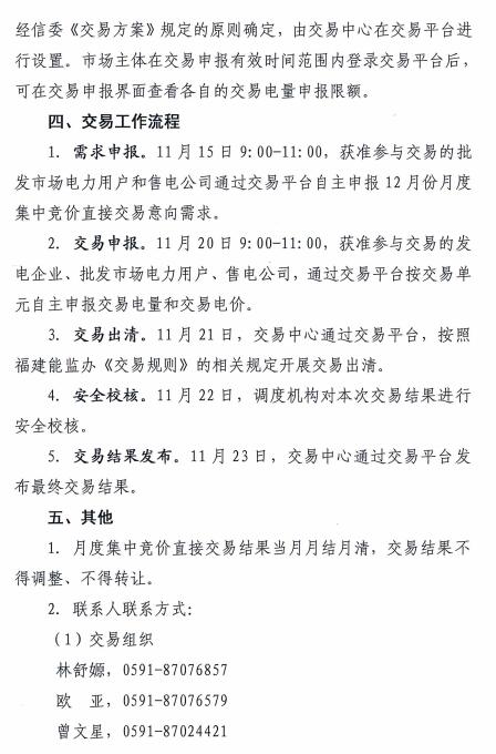 福建2018年12月月度集中競價(jià)直接交易11月20日進(jìn)行交易申報(bào)