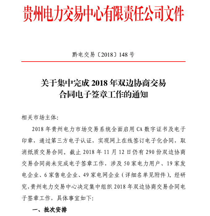 貴州關(guān)于集中完成2018年雙邊協(xié)商交易合同電子簽章工作的通知