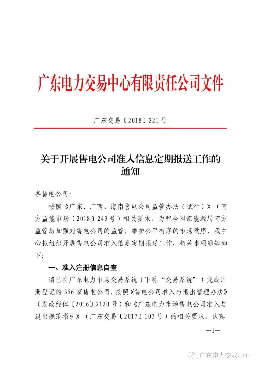 廣東電力交易中心日前發(fā)布了《關(guān)于開展售電公司準(zhǔn)入信息定期報送工作的通知》,廣東擬組織開展售電公司準(zhǔn)入信息定期報送工作,已完成注冊等級的356家售電公司需認(rèn)真開展準(zhǔn)入信息自糾自查工作。對于存在準(zhǔn)入注冊信息未完全填報、不滿足售電公司準(zhǔn)入條件要求或?qū)嶋H情況已變更但尚未完成注冊信息變更等情形的, 請于2018年11月30日前補(bǔ)充完善,并上傳相應(yīng)證明材料。