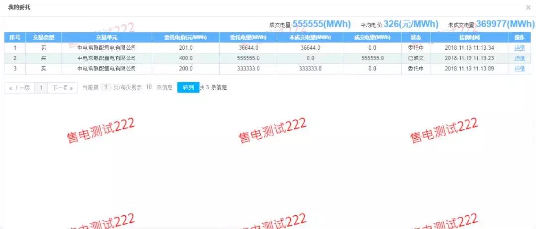 ▲上圖即為委托詳情,其中有此筆交易的電量,成交對象等詳細信息。