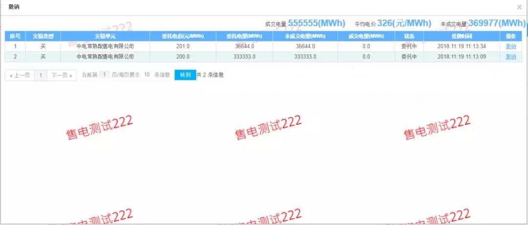 在此界面中可以查看到尚未成交的電量情況,點擊最右側(cè)的“撤銷”按鈕即可將此筆交易撤銷。