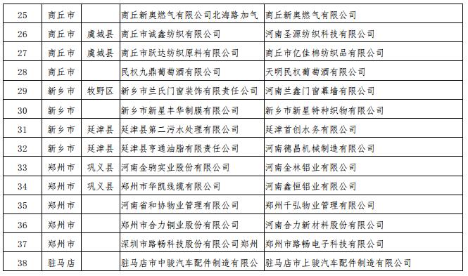 河南公示38家申請注冊信息重大變更的電力用戶(2018年第十批)