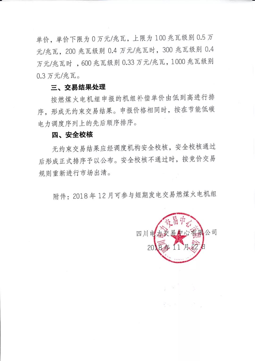 公告 | 四川關(guān)于開展2018年12月短期發(fā)電輔助服務(wù)交易的公告