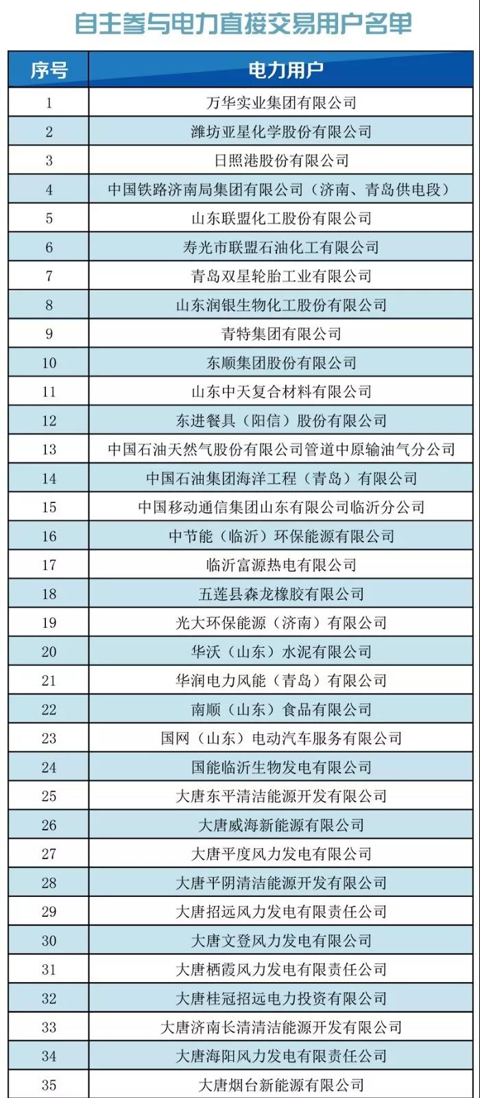 購(gòu)電方:在山東電力交易中心網(wǎng)站公示通過(guò)、完成注冊(cè)且已提交有效2018年跨省區(qū)電力用戶(hù)代理協(xié)議、省內(nèi)電力用戶(hù)代理協(xié)議的售電公司;原省經(jīng)信委準(zhǔn)許并在山東電力交易中心網(wǎng)站完成注冊(cè)、可自主參與2018年跨省區(qū)電力直接交易的電力用戶(hù)和省內(nèi)電力直接交易的電力用戶(hù)(詳見(jiàn)下表)。