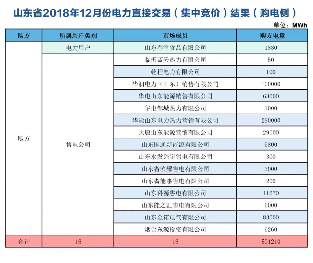 關(guān)于發(fā)布山東省2018年12月份電力直接交易(集中競價)結(jié)果的公告