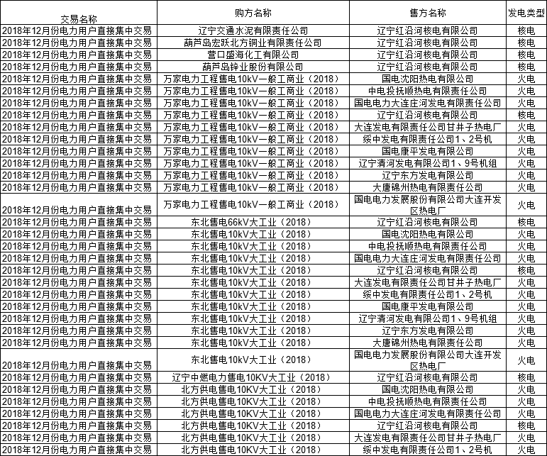 2018年12月電力用戶與發(fā)電企業(yè)月度集中競(jìng)價(jià)交易結(jié)果公告