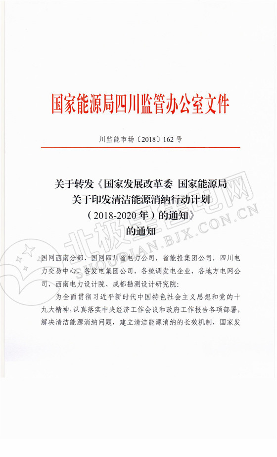 從四川能監(jiān)辦獲悉,發(fā)改委、能源局日前聯(lián)合發(fā)布了《關(guān)于印發(fā)清潔能源消納行動(dòng)計(jì)劃(2018-2020年)的通知》,提出:到2020年,基本解決清潔能源消納問(wèn)題。