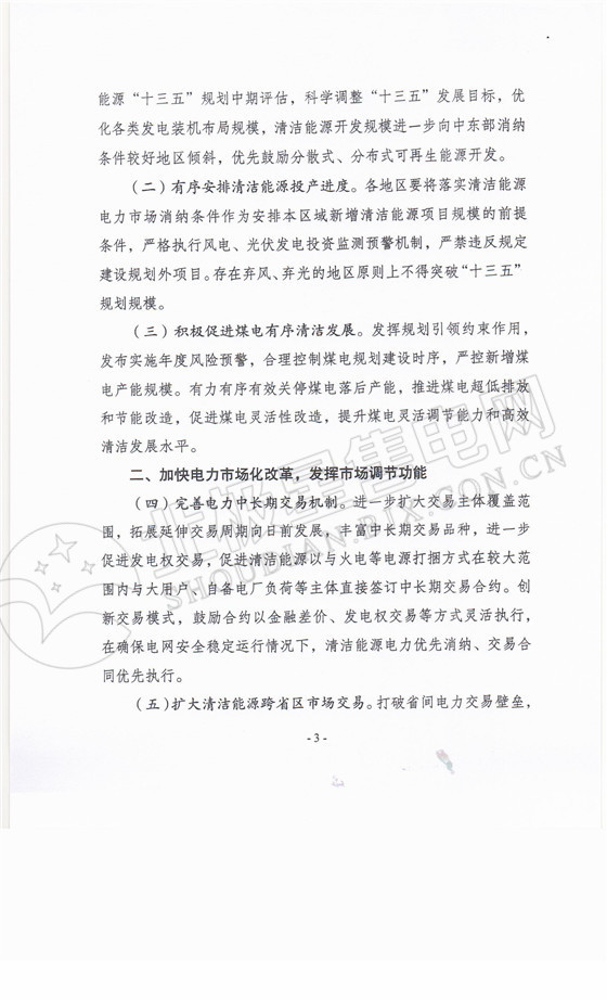 2.擴(kuò)大清潔能源跨省區(qū)市場(chǎng)交易。打破省間電力交易壁壘,推進(jìn)跨省區(qū)發(fā)電權(quán)置換交易,確保省間清潔能源電力送電協(xié)議的執(zhí)行,清潔能源電力可以超計(jì)劃外送。在當(dāng)前跨區(qū)域省間富余可再生能源電力現(xiàn)貨交易試點(diǎn)的基礎(chǔ)上,進(jìn)一步擴(kuò)大市場(chǎng)交易規(guī)模,推動(dòng)受端省份取消外受電量規(guī)模限制,鼓勵(lì)送受兩端市場(chǎng)主體直接開(kāi)展交易。各地不得干預(yù)可再生能源報(bào)價(jià)和交易。合理擴(kuò)大核電消納范圍,鼓勵(lì)核電參與跨省區(qū)市場(chǎng)交易。