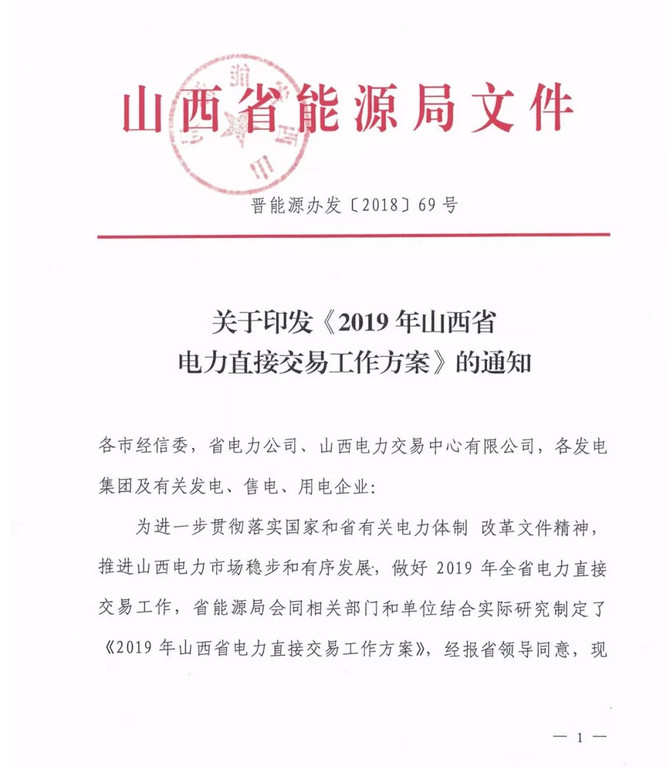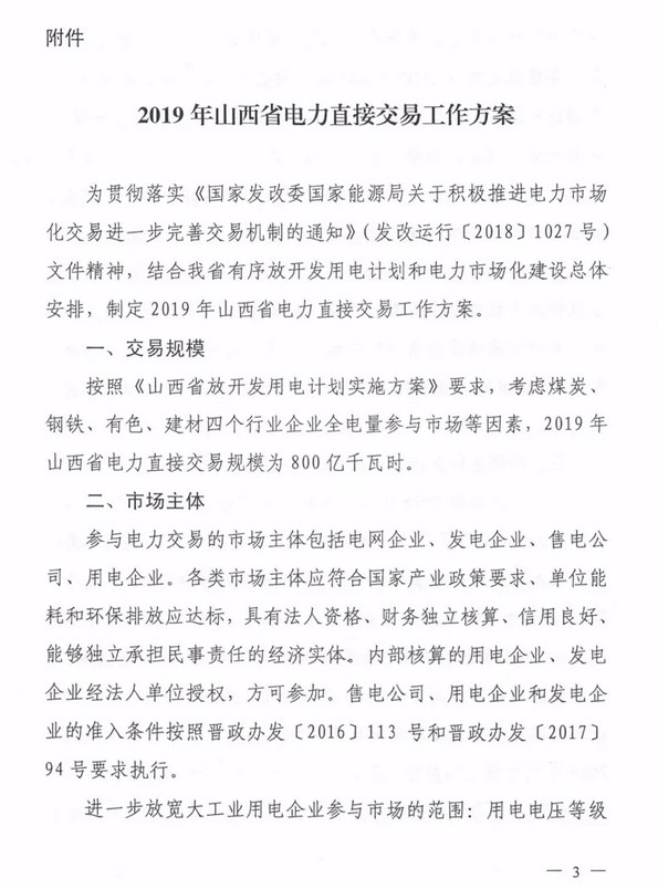 山西省能源局日前發(fā)布了《2019年山西省電力直接交易工作方案》,方案鼓勵售電公司對各類工業(yè)園區(qū)、開發(fā)區(qū)、綜改區(qū)內(nèi)企業(yè)實施打捆交易,采用