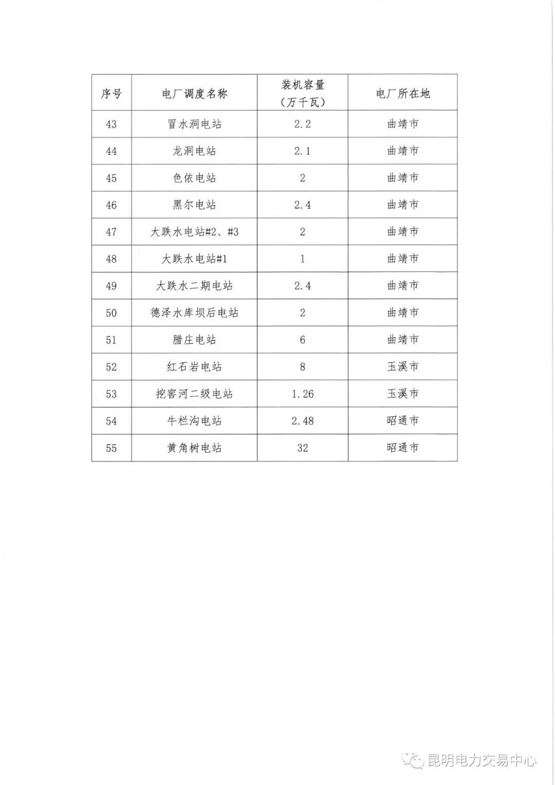 昆明電力交易中心關(guān)于2019年放開發(fā)電計(jì)劃小水電名單的公告,文件要求,2019年進(jìn)一步放開除保山、文山、怒江、迪慶、麗江、德宏、臨滄等七個(gè)電價(jià)體系相對獨(dú)立的州市外,110千伏及以上電壓等級并網(wǎng)運(yùn)行公用水電廠參與市場化交易。經(jīng)確認(rèn)2109年新入市小水電共計(jì)55家。