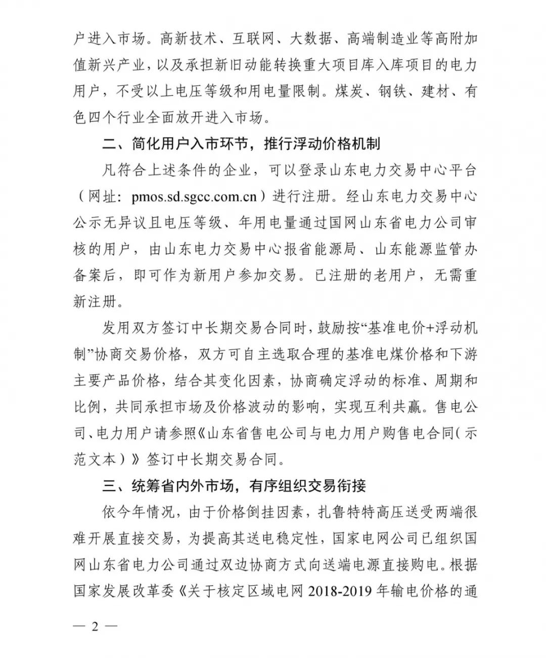 山東省發(fā)改委、山東省能源局和山東能監(jiān)辦日前聯合印發(fā)了《關于2019年山東省電力交易工作安排的通知》,2019年全省市場交易電量1600億千瓦時,放開10千伏及以上電壓等級、年用電量500萬千瓦時及以上電力用戶進入市場。高新技術、互聯網、大數據、高端制造業(yè)等高附加值新興產業(yè),以及承擔新舊動能轉換重大項目庫入庫項目的電力用戶,不受以上電壓等級和用電量限制。煤炭、鋼鐵、建材、有色四個行業(yè)全面開放進入市場;由于價格倒掛因素,2019年起,錫盟、扎魯特高壓跨省送電由國網山東省電力公司集中掛牌購電。