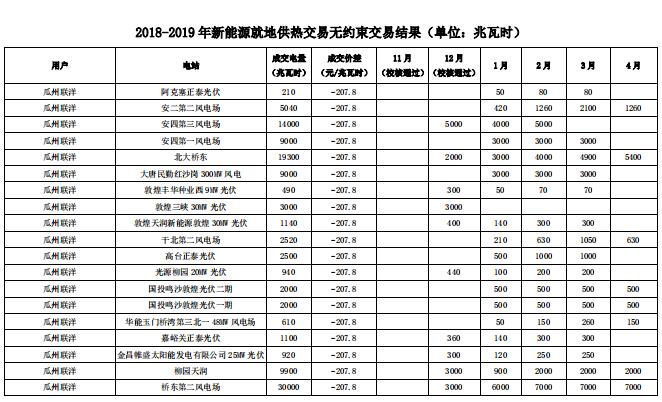 甘肅發(fā)布了《2018-2019年度甘肅省供暖示范項目與新能源發(fā)電企業(yè)供暖期直接交易結果公告》