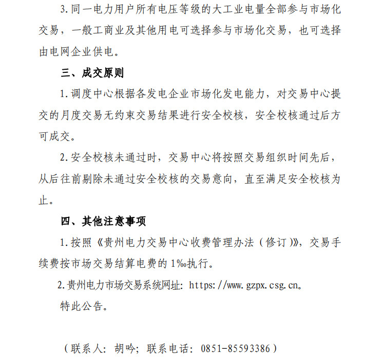 貴州關(guān)于2019 年1月開展市場(chǎng)化交易 時(shí)間安排的通知