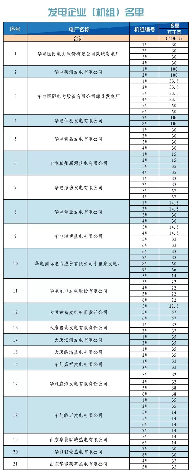 售電方:根據(jù)山東能源監(jiān)管辦下發(fā)的《關(guān)于公布2019年電力直接交易發(fā)電企業(yè)(機(jī)組)名單的通知》(魯監(jiān)能市場〔2018〕159號(hào))文件確定的省內(nèi)直調(diào)發(fā)電企業(yè)(詳見下表)。