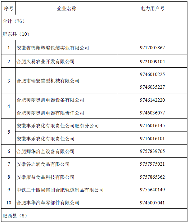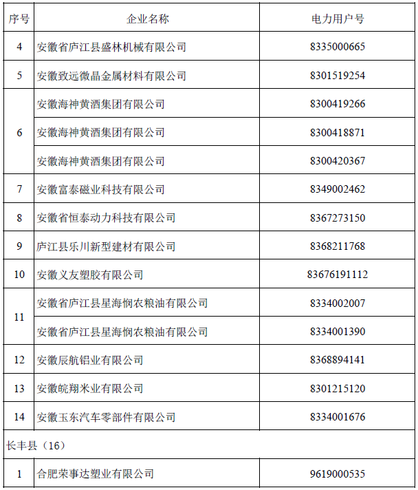 2016年12月15日,合肥市發(fā)改委向安徽電力交易中心提交了擬參與2017年直接交易電力用戶332戶,并說明其中85戶存在用戶號錯誤等疑問。根據(jù)有關(guān)規(guī)定,交易中心安徽電力交易中心對外公示了初審無異議的247戶用戶。2017年1月13日,合肥市發(fā)改委對存疑的85戶進行了進一步核實和修訂,并將符合規(guī)定的76戶企業(yè)再次報送,現(xiàn)予公示(名單附后)。