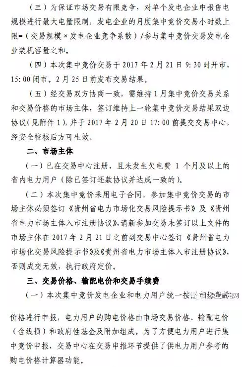 貴州2017年2-3月集中競(jìng)價(jià)省內(nèi)直接交易公告